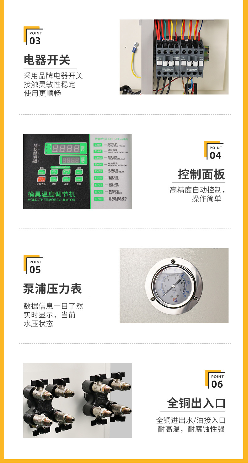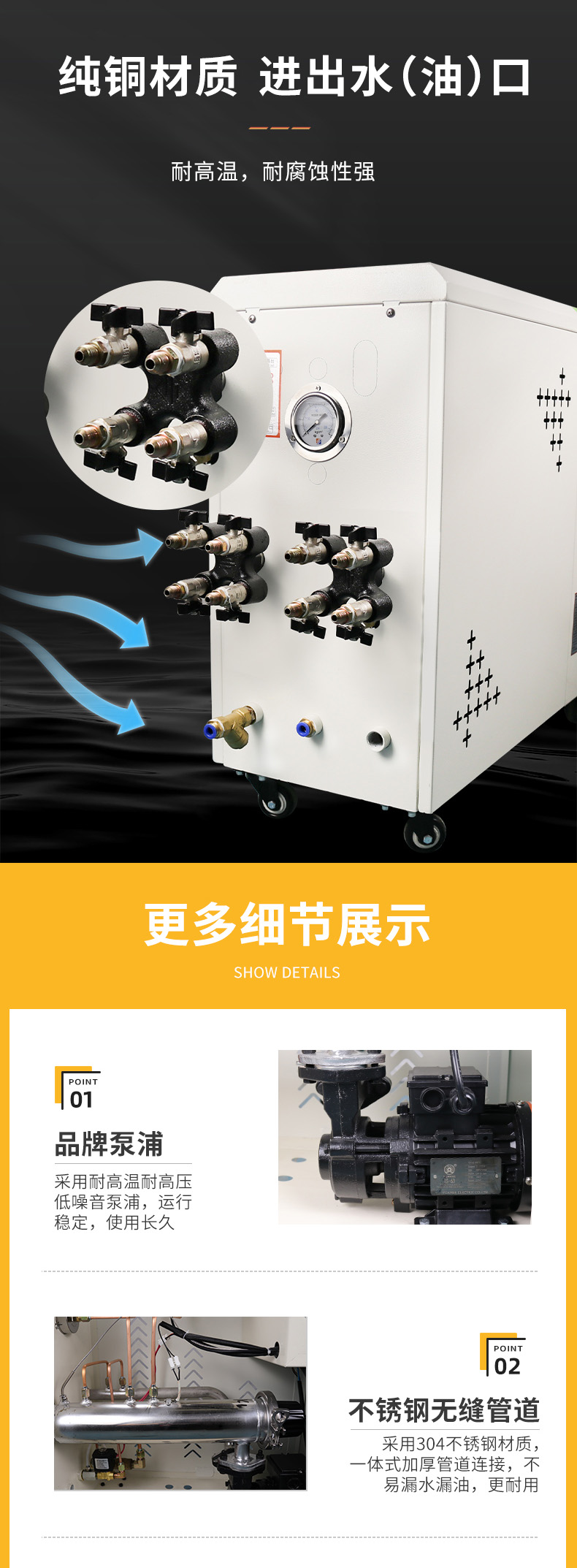 在現(xiàn)代化的工廠中,因應(yīng)市場的競爭,節(jié)省人力,提高品質(zhì),降低成本的經(jīng)營策略是刻不容緩的,模溫機(jī)的使用,可使模具預(yù)熱時間減少,成品表面質(zhì)量提升及可完全自動化生產(chǎn)。提高模具壽命是提高生產(chǎn)力的必要手段。